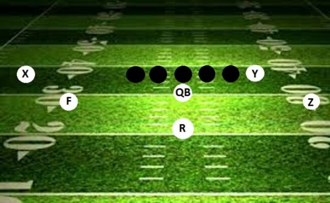 This is also known as five wide and is called empty because there is no player lined up behind the quarterback. This is almost exclusively a passing formation though a mobile quarterback can run with the football on the play.