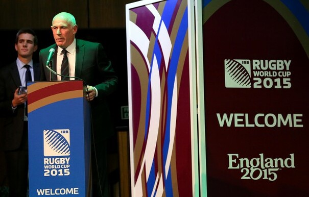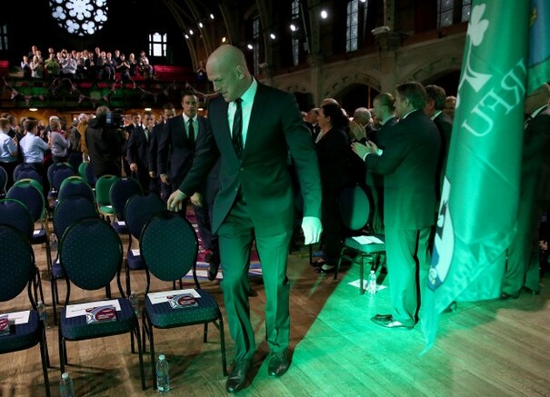 Simon Zebo receives his cap from Brett Gosper World Rugby CEO