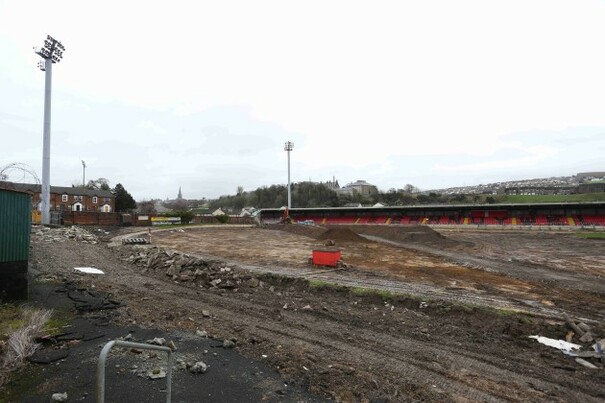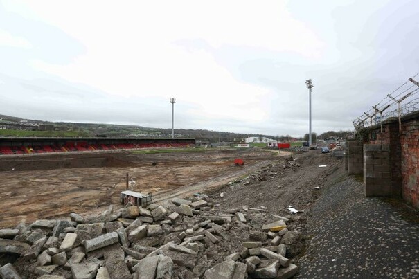 A view of ongoing redevelopment at Brandywell Stadium