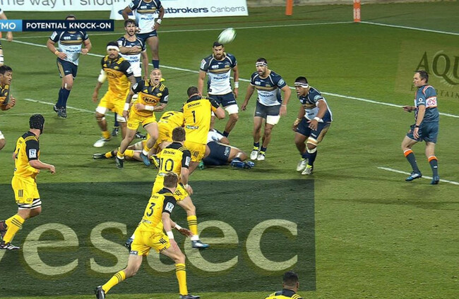 As ‘Canes scrum-half TJ Perenara attempted to fire the ball wide from the base of a ruck, front row May wandered into his passing lane and produced what can only be described as a deft header, with Barrett capitalising upon May’s ‘falcon’ and the Brumbies’ subsequent confusion to dot down for the home side.