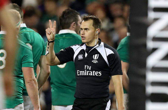 John Lacey refereeing France's loss to Scotland. Inpho / Billy Stickland