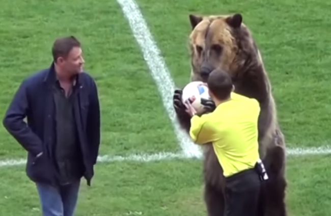 AN ANIMAL WELFARE group has criticised the use of a bear to hand the football over to the referee at the start of a Russian third division game.