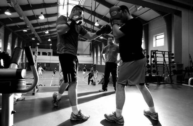 Team Ireland’s Joe Ward, left, training in the gym during the teams 8 day training camp at The Curragh. Pic: INPHO/Cathal Noonan