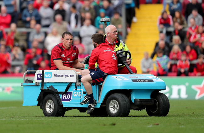 The Tipperary man’s agony was clear before he was stretchered off during Munster’s Heineken Champions Cup win over Gloucester and the 31-year-old was immediately taken to hospital.