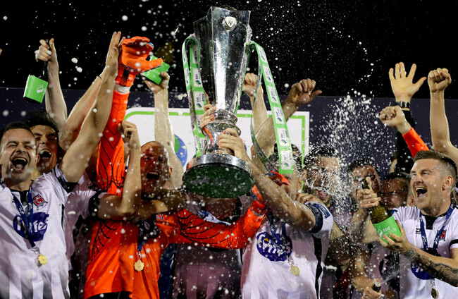 Dundalk lift the SSE Airtricity League trophy at Oriel Park last season. Ryan Byrne/INPHO