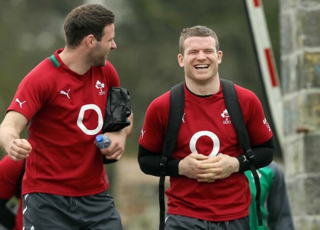 Making it Irish: Fergus McFadden and Gordon D’Arcy laugh it up. (©INPHO/Billy Stickland)