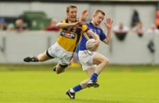 Longford's Declan Reilly and Redmond Barry of Wexford. INPHO/Cathal Noonan