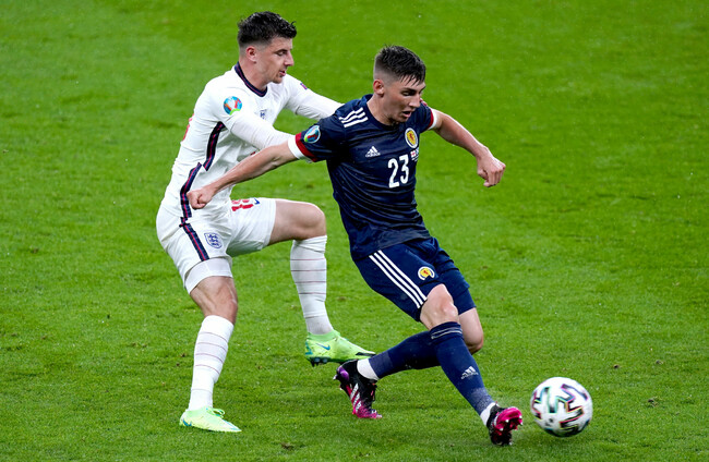 File photo dated 18-06-2021 of England's Mason Mount (left) and Scotland's Billy Gilmour. PA