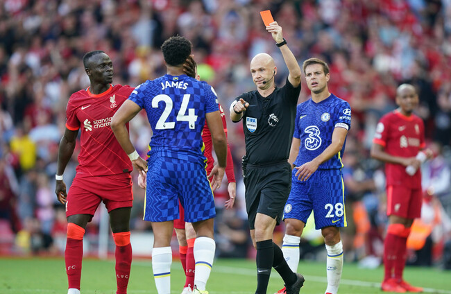 The referee sent off James for handball and Mohamed Salah scored from the resulting penalty, but Liverpool could not eke out a second-half winner as Chelsea channelled their anger into a superb defensive display.
