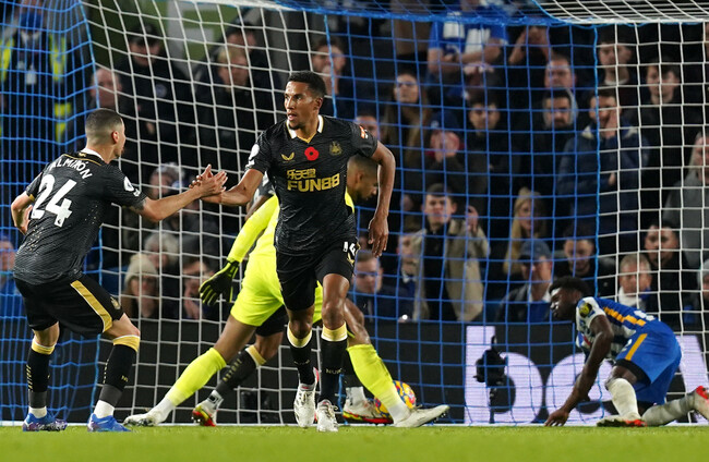 Just before the half-time break, Matt Ritchie had lost Solly March at the far post after a cross from Lamptey, but he was slightly ahead of the ball and it hit his back, with Newcastle able to clear.