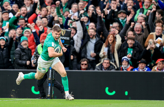 Garry Ringrose scores for Ireland. Dan Sheridan/INPHO