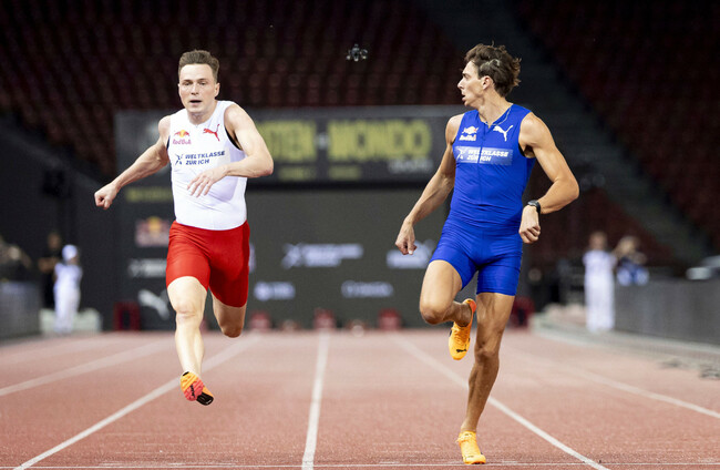 Pole vault king Duplantis beats 400m hurdles master Warholm in 100m showdown