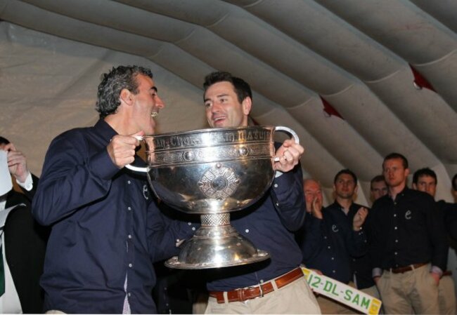 Jim McGuinness and assistant manager Rory Gallagher at Donegal’s All-Ireland homecoming. Pic: INPHO/Donna McBride