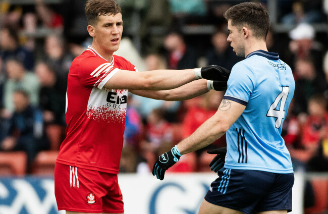 Dublin broke the Derry kickout and Killian McGinnis, with his paternal connections to Derry, pointed.