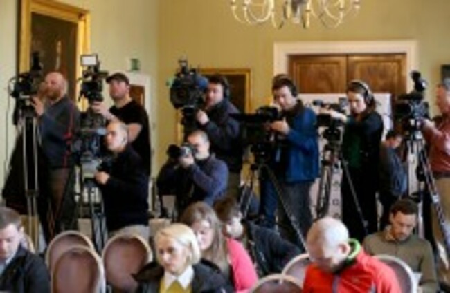 The TV crews in Carton House on Tuesday (bonus points if you can spot TheScore.ie's representative) ©INPHO/Billy Stickland