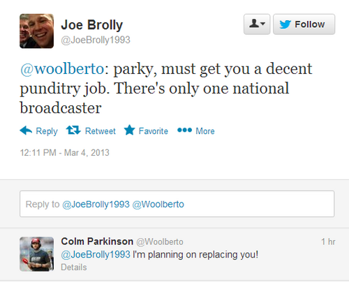 Relax, now you get your recommended daily allowance of Joe Brolly thanks to the magic of Twitter.
