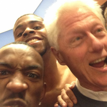 Louisville player Chane Behanan posted photos on his Instagram of the former Commader-in-Chief goofing off with the team. Clinton has been a friend of Louisville head coach Rick Pitino since the early 90s.