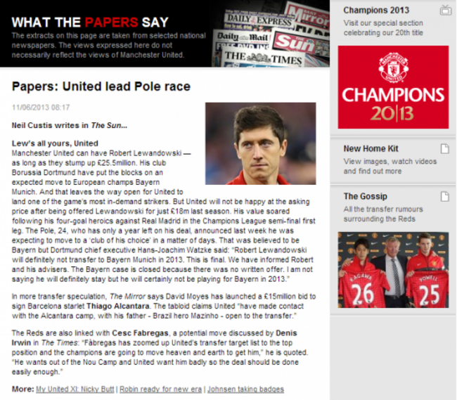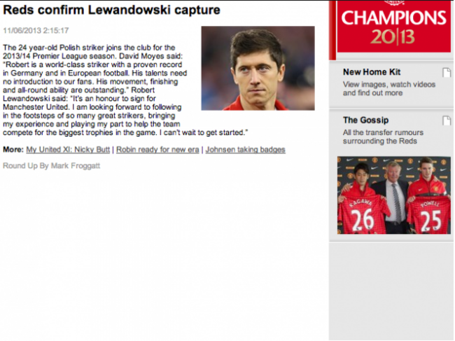 Are you buying it Man Utd fans? This is similar-looking story is from the website at the moment: