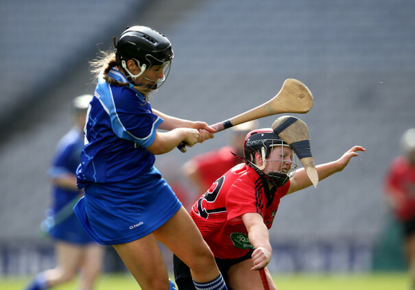 Down's Colleen Clarke blocks down Laois player Rosemary Bermingham