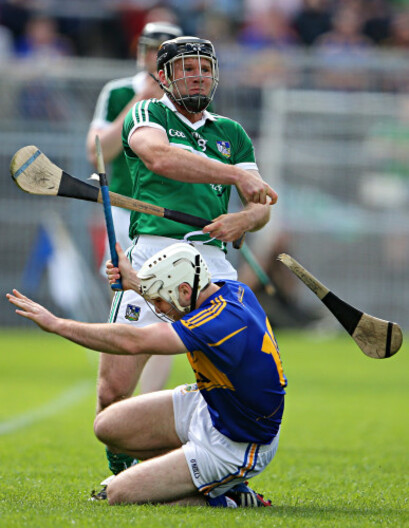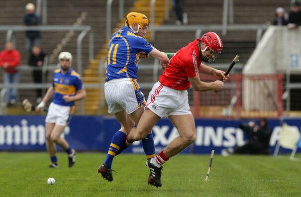 A clash between Cork's Ronan Curran and Tipperary's Lar Corbett