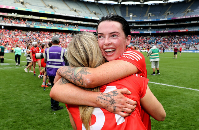 Some 12 months earlier, Thompson also dropped to the ground at the end of the decider. Cork had hammered Waterford, Thompson coming off the bench for a cameo as she ramped up her return from an ACL injury. Yes, there was elation, but Sunday was different. A hard-fought win. A proper battle with a fully-fit Thompson at its heart.