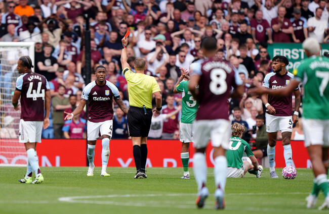 Villa defender Konsa was sent off for a professional foul on Anthony Gordon midway through the second half on Saturday.
