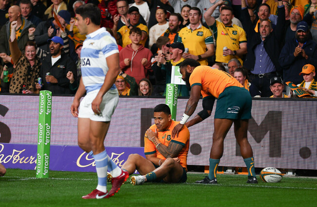Ikitau scored the opening try in the Rugby Championship clash on Saturday in Sydney, but hurt himself in the process after colliding with Emiliano Boffelli.