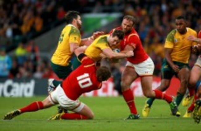 26 – Australia’s David Pocock closes in on Wales’ Taulupe Faletau…