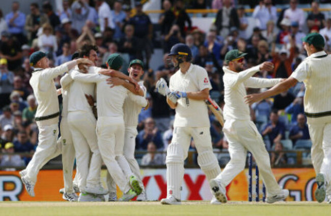 AUSTRALIA WON BACK the Ashes after bowling England out cheaply despite rain delays and a pitch controversy to secure an innings win on the final day of the third Test in Perth this morning.