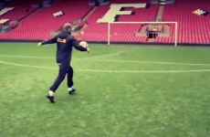 Jason McAteer brings a bit of GAA to Anfield as he kicks a point into the Kop end