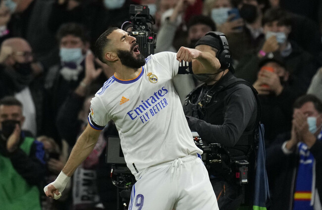 Atletico’s defence were dashing back with such intent they forgot about Benzema behind them, the Frenchman holding his position just inside the area for the cut-back. Vinicius found him with a floated pass and Benzema had time to send a perfect volley past Jan Oblak.