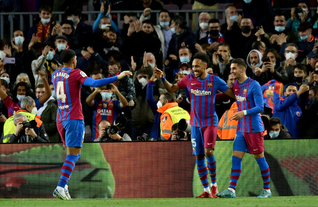 Aubameyang’s opener was a difficult finish made to look easy, Gerard Pique’s header coming back off the crossbar and the ball forcing Aubameyang to adjust his feet before throwing his body into the air and volleying in.