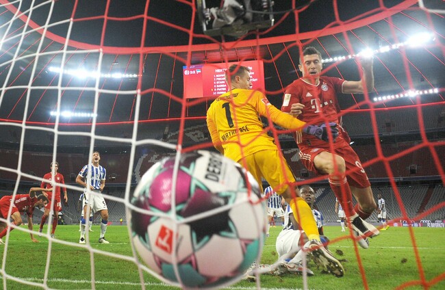 Lewandowski first struck on 40 minutes when he fired home the rebound after Hertha goalkeeper Alexander Schwolow had saved his initial header.