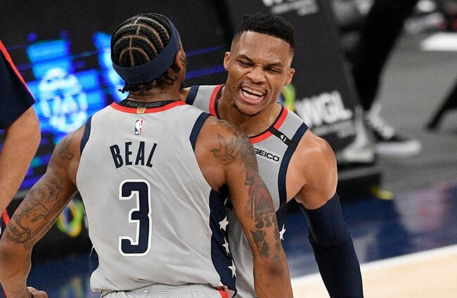 BRADLEY BEAL AND Russell Westbrook both scored three-pointers inside the last nine seconds as the Washington Wizards upset the Brooklyn Nets 149-146.