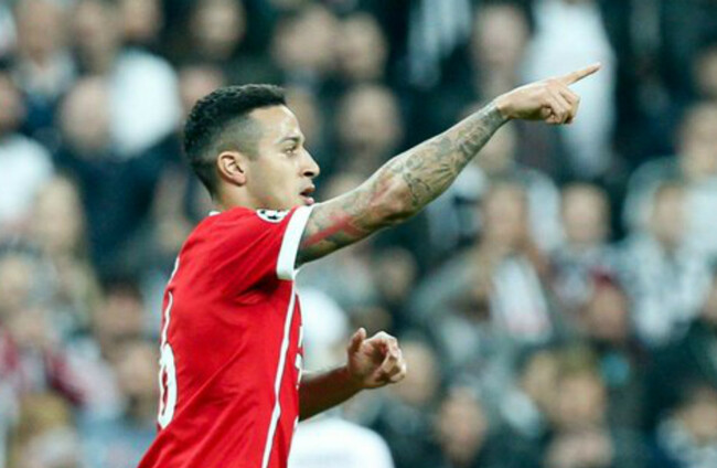 THIAGO ALCANTARA SCORED but was substituted due to injury as Bayern Munich won 3-1 at Besiktas to cruise into the quarter-finals of the Champions League.