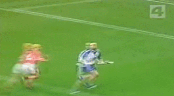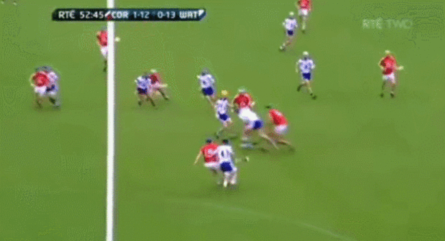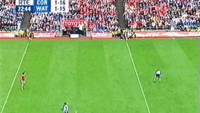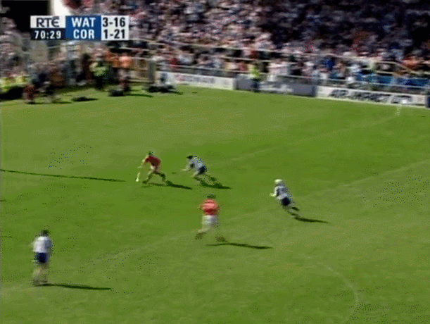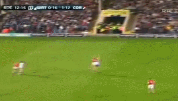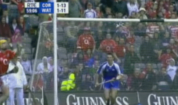 A long ball into the Waterford square was kept in play by Joe Deane before he squeezed it back to his team-mate. Corcoran decided the only way he’d score was by dropping the sliotar and curling it into the bottom corner.