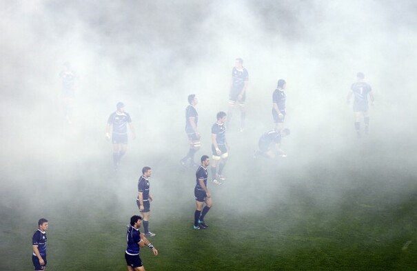 Leinster players lost in the fog at the beginning of the game against Munster in October.