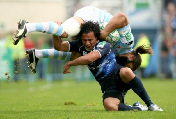 Leinster's Isa Nacewa gets to grips with the Caveman, Sebastien Chabal, of Racing Métro 92.Source: INPHO/James Crombie