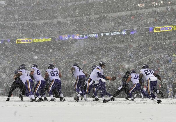 Snow falls as Minnesota Vikings and the Baltimore Ravens meet in the NFL
