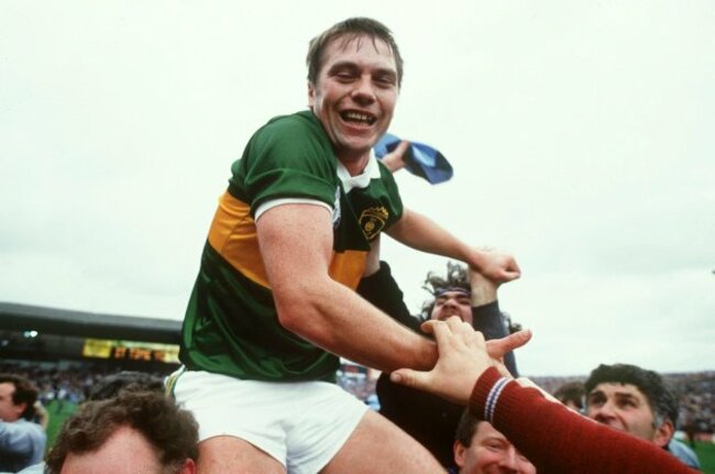Paidí O’Sé is lofted by Kerry supporters after the ’85 All-Ireland win. (©INPHO/Billy Stickland)