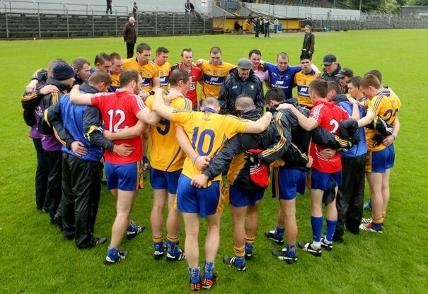 Mick O'Dwyer speaks to his Clare team after defeat to Cork