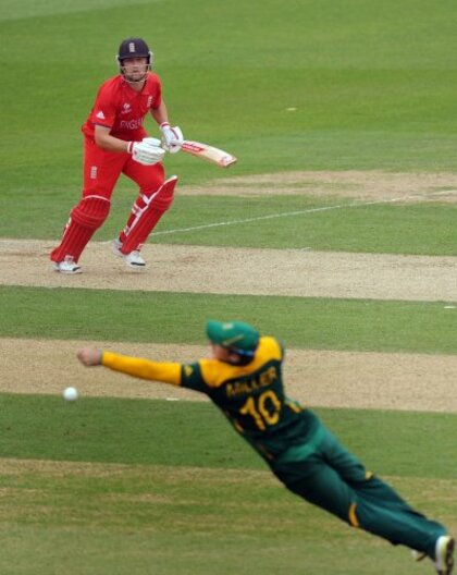 England's Jonathan Trott bats during the ICC Champions Trophy, Semi Final at the Oval