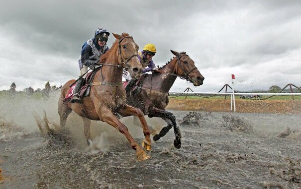 Patrick Mullins on Uncle Junior in a battle through the water at Punchestown