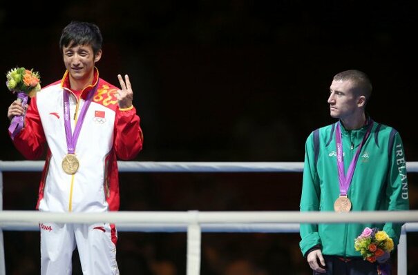 Paddy Barnes with Zou Shiming after getting his Bronze medal in London