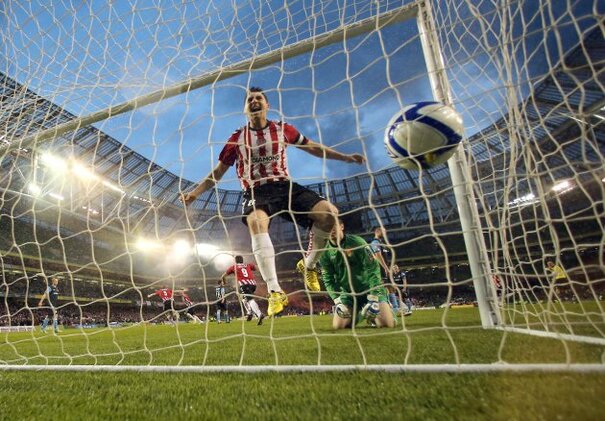 Kevin Deery celebrates an FAI Cup Final goal for Derry City