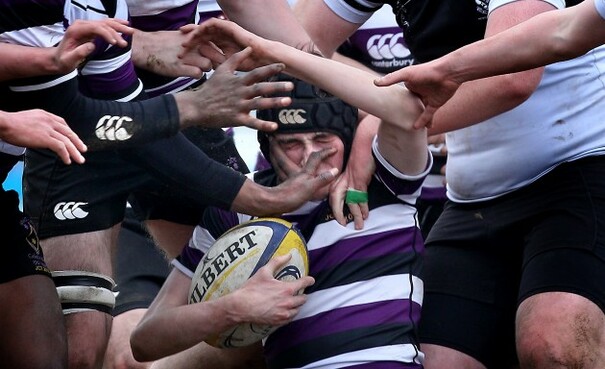 Terenure's Rob Somerville holds on to the ball despite pressure from Newbridge College during the Leinster Junior Cup quarter-final. Source: INPHO/Morgan Treacy
