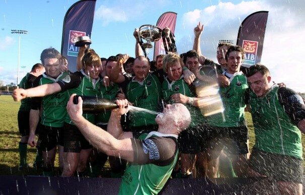Dublin Rebels players celebrate winning the Shamrock Bowl against the Limerick Vikings.