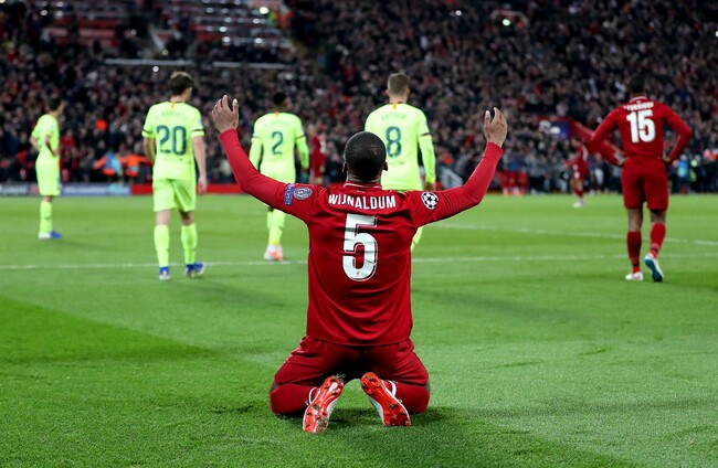 What’s just happened is that Gini Wijnaldum has headed Liverpool into a 3-0 lead on the night. Once again, this is a scenario that has been transcribed from the pages of pure fantasy. Jordi Alba doesn’t normally get tackled in his own corner, but this time he does. Ter Stegen doesn’t normally let shots squirm under his arm, but this time he does. Clement Lenglet doesn’t normally lose his man in the area, but this time he does. Gini Wijnaldum doesn’t normally score at all.