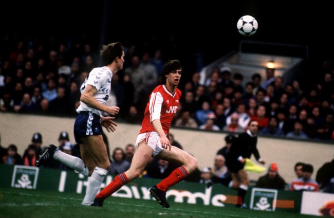 Quinn in action for Arsenal against Spurs in 1987. S&G and Barratts/EMPICS Sport