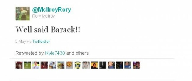 Our own Rory McIlroy is very much a hawk when it comes to international relations it seems. The Holywood star tweeted his support for the dramatic swoop on bin Laden’s Pakistan lair and the American president’s subsequent announcement.